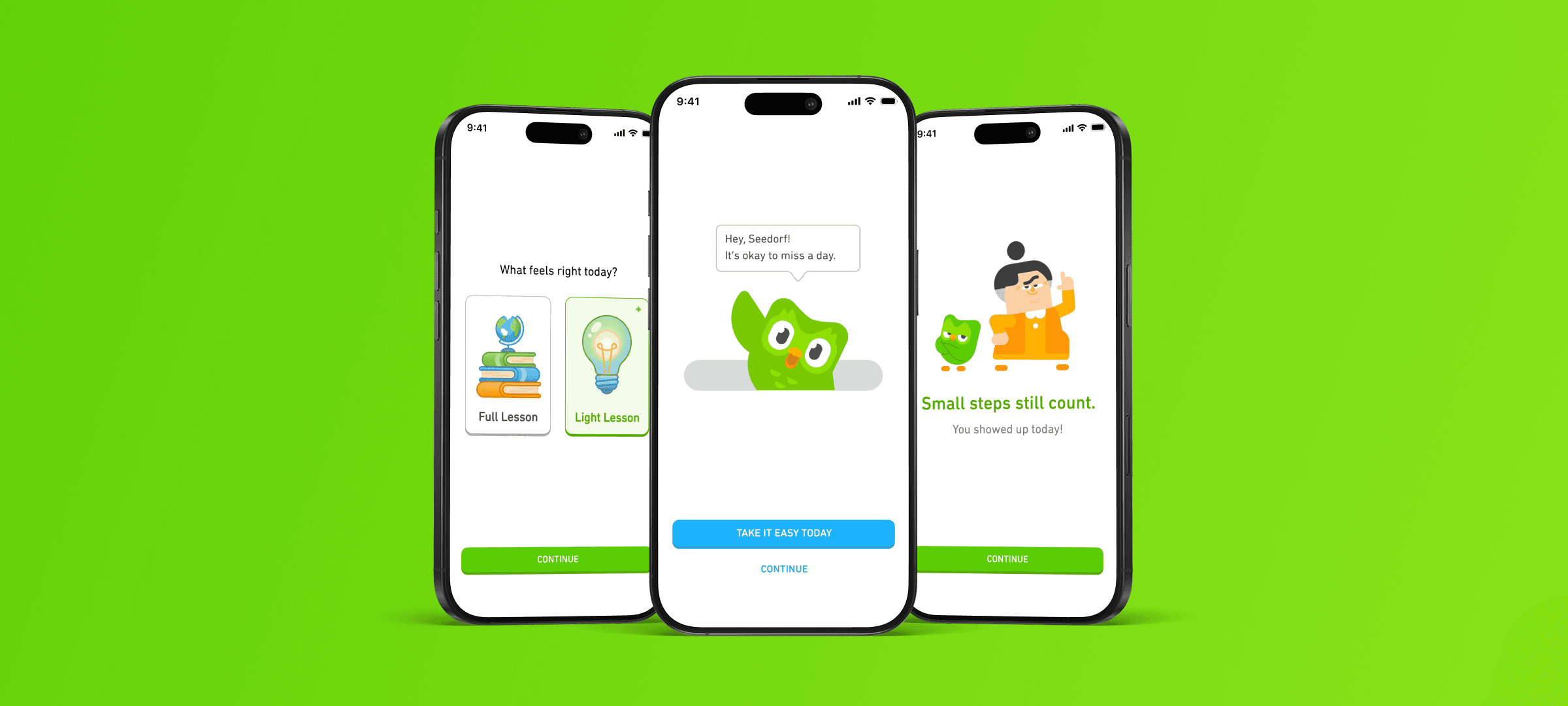 Research showed that after missing a day, some learners feel discouraged instead of motivated. At that moment, asking users to immediately resume a full lesson can increase friction. The design approach prioritizes helping users feel safe returning before asking them to take action.